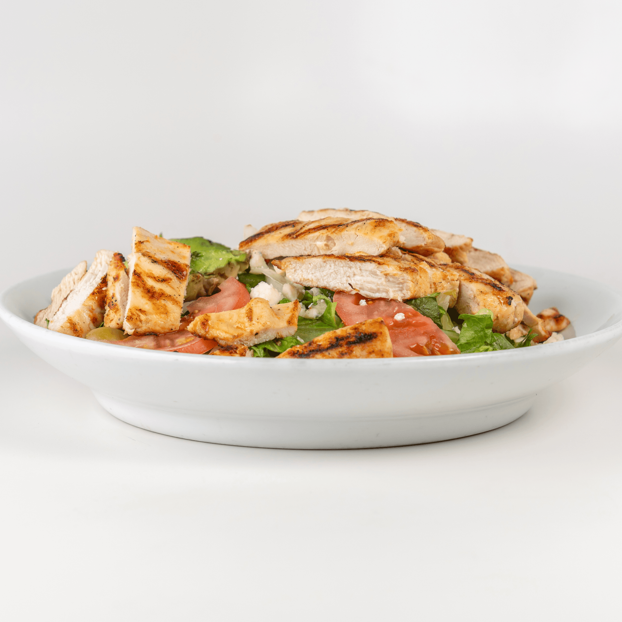 Grilled chicken, mixed greens, shredded cheese, tomato & avocado