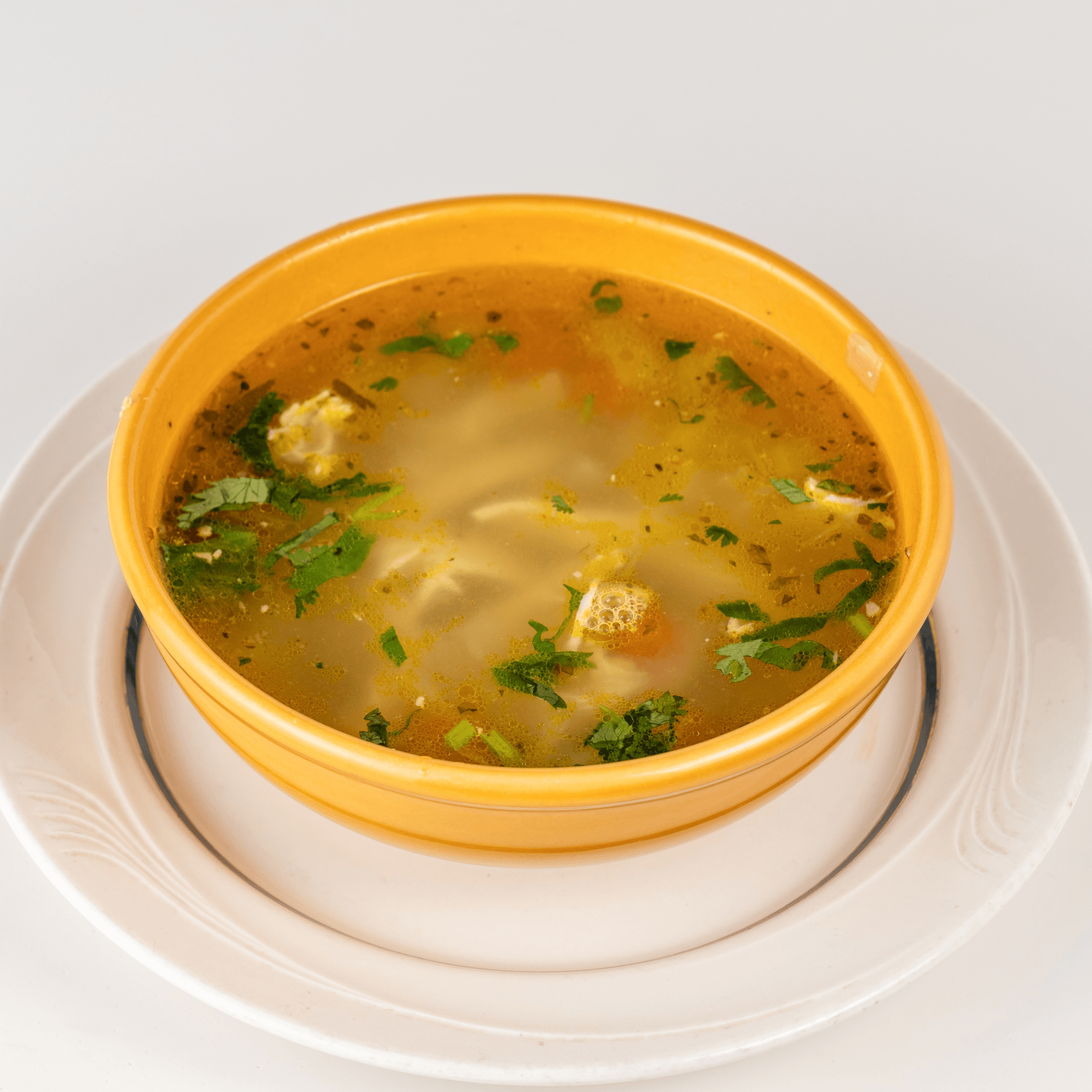 Soft corn tortillas rolled with chicken, topped with mild tomato sauce, sour cream, and melted cheese