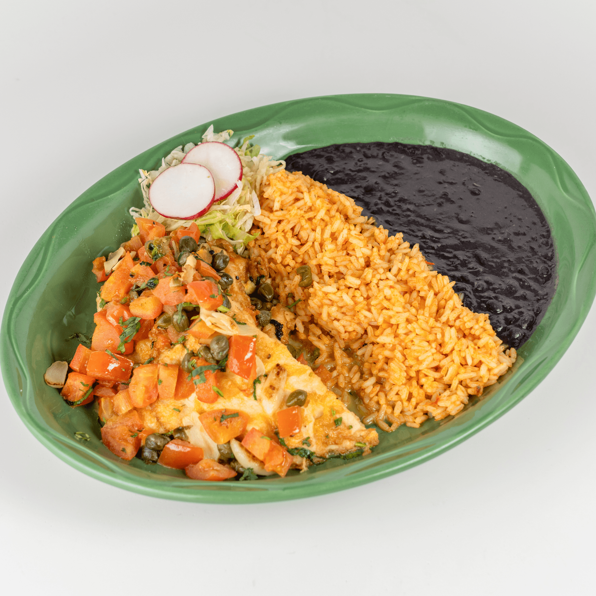 Poblano peppers stuffed with Oaxaca cheese or ground beef in a mild roasted tomato sauce.